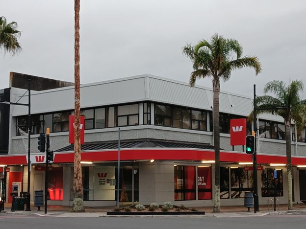 圖為西太平洋銀行Gisborne分行。因應颶風等自然災害,西太平洋銀行在東海岸四地分行安裝太陽能板與儲能設備。攝影:楊軒妮