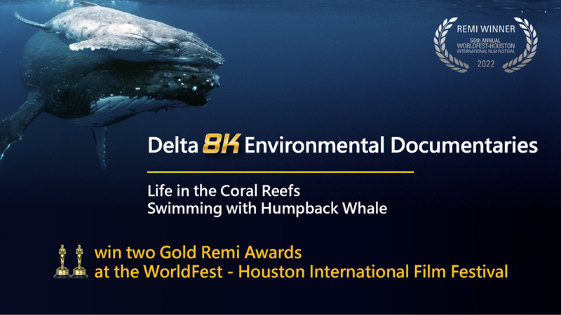 "Swimming with Humpback Whale" filmed by the Japanese senior photographer Hiroyuki Nakagawasai (中川西宏之), as commissioned by Delta vividly and realistically captured how humpback whales raise their next generation with the 8K ultra-high-definition technology. It aims to make people recognize their figures, living patterns, and contribution to carbon sequestration and take action for marine conservation together. The film won the gold award in the short-length documentary film category at the WorldFest-Houston in 2022.