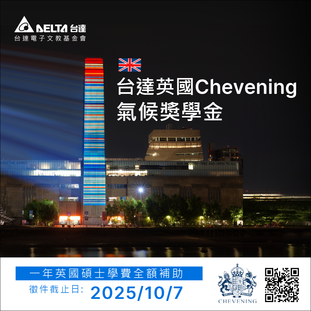 詳情可參考台達基金會官網-台達英國Chevening氣候獎學金專頁