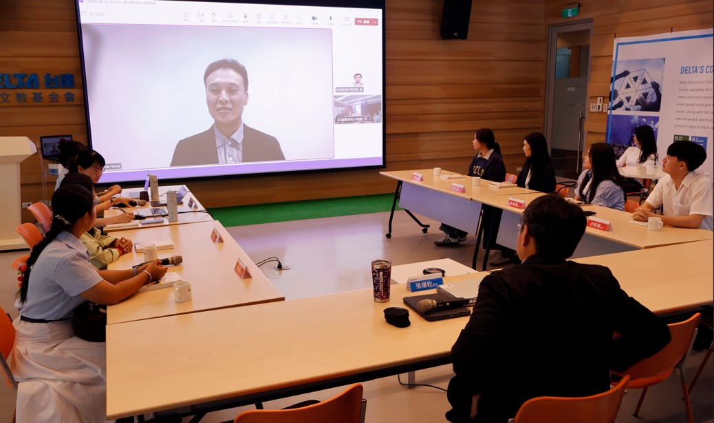 泰達電子Delta Electronics (Thailand)人資長黃啟豪先生亦線上參與,分享台達在招募人才的策略,並表示,台達電子與基金會都秉持永續發展文化,多年來業務不斷成長,也持續需要人才,並鼓勵獲獎同學學有所成可加入台達,一起為地球永續發展努力,未來無論在求學或職場都要持續提升自己的能力。