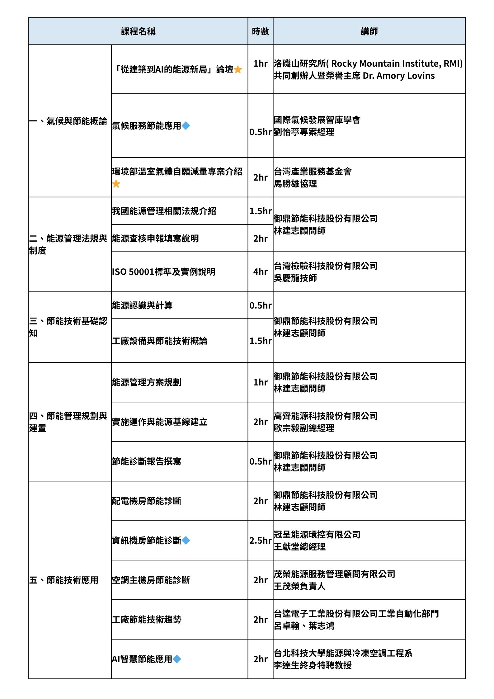 ▶課程大綱:氣候與節能概論、能源管理法規與制度、節能技術基礎認知、能源管理系統規畫與建置、節能技術應用