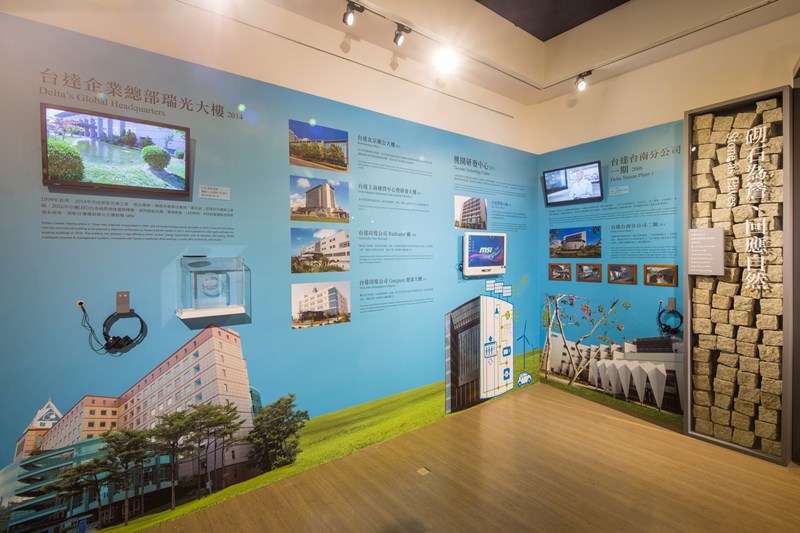 為呼籲世人重視減碳,「綠築跡-台達綠建築特展」2015年COP21巴黎氣候會議期間於巴黎大皇宮首次展出,吸引四萬多位民眾參觀。2016年6月移展至北京清華美術學院;當年9月移展到臺北華山文創園區。2017年10月受邀至高雄駁二藝術特區,帶著台達十多年來築出二十餘棟綠建築的故事,融入低碳住行的生活智慧,邀您一同走進綠築跡,漫步低碳路,看見一座由您改變而不同的低碳城市。